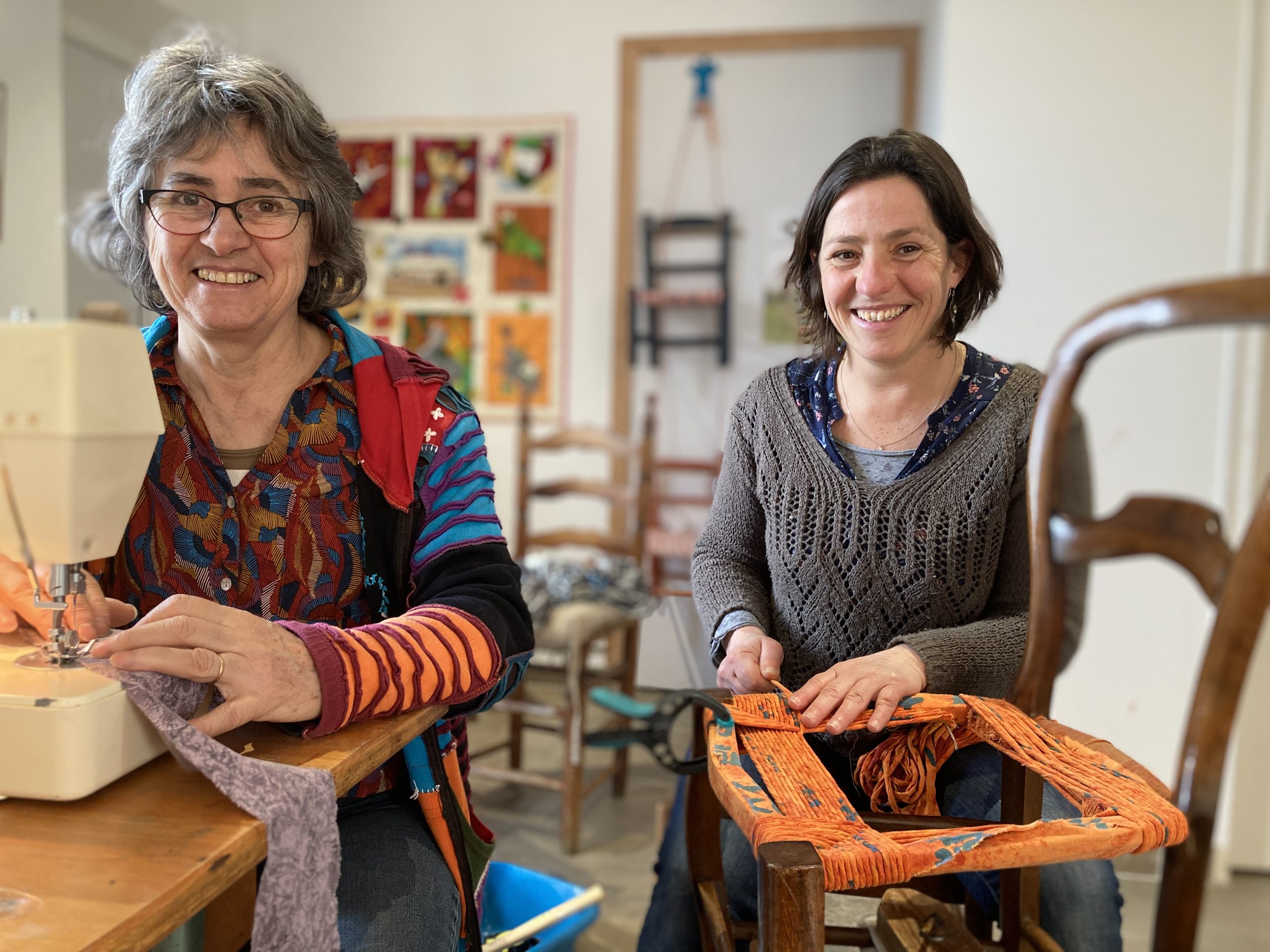Nous animons des ateliers pour apprendre à refaire des assises de chaises paillées avec les tissus de votre choix, guidé étape par étape sur 3 séances de 3h.